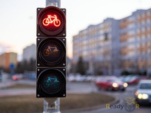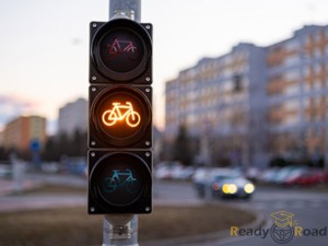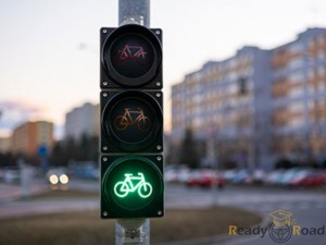 À un carrefour, vous pourrez trouver un feu avec une silhouette de cycliste ou de piéton.